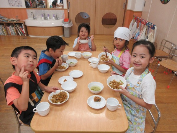 だんだんといい匂いがしてくると、食べるのを待ちきれない様子でしたよ。いただきますをして食べると、「美味しいー!」と喜んでいました!