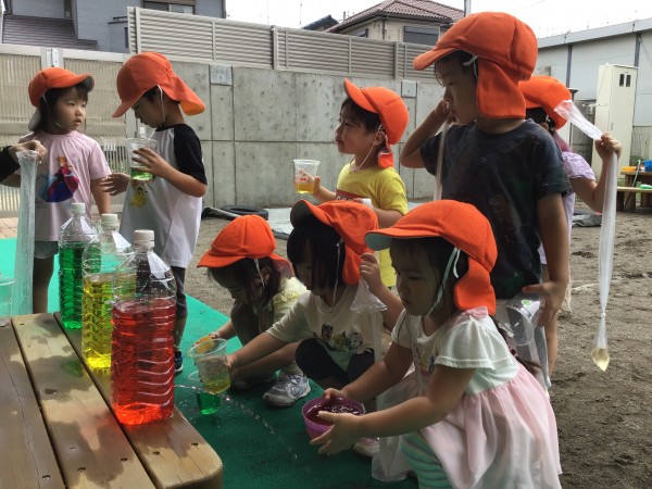 色水を作り、みんなで色を混ぜた時の変化を楽しみました。